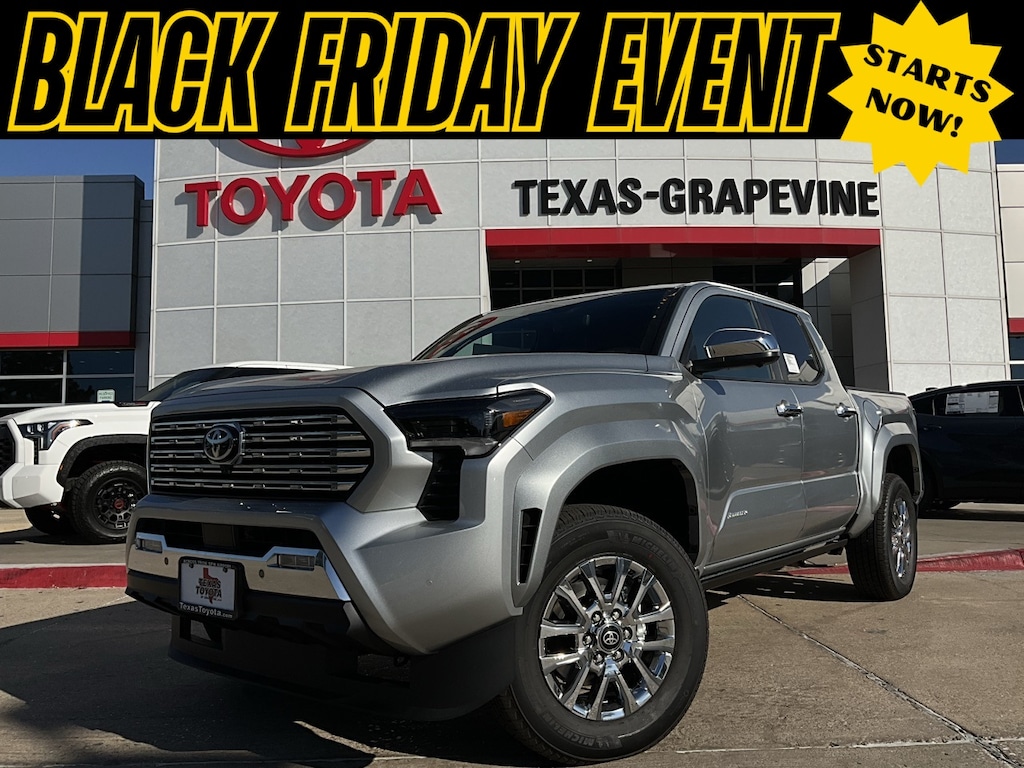 Backup Camera, LED Accent Lighting, Night Vision Auto-Dimming Mirror, Wheels, ACROSS FROM DFW AIRPORT, PRE COLLISION SYSTEM WITH PEDESTRIAN DETECTION, LANE DEPARTURE ALERT WITH SWAY WARNING, AUTO HIGH BEAMS, DYNAMIC RADAR CRUISE CONTROL, Push Button Start, Apple CarPlay Compatible, Android Auto, 4WD, 20" Wheels, 3.583 Axle Ratio, 4-Wheel Disc Brakes, 9 Speakers, ABS brakes, Air Conditioning, AM/FM radio: SiriusXM, Anti-whiplash front head restraints, Apple CarPlay/Android Auto, Auto High-beam Headlights, Auto tilt-away steering wheel, Auto-dimming Rear-View mirror, Automatic temperature control, Body Side Molding (TMS), Brake assist, Bumpers: body-color, Chrome wheels, Driver door bin, Driver vanity mirror, Dual front impact airbags, Dual front side impact airbags, Electronic Stability Control, Emergency communication system: Safety Connect (1-year trial), Exterior Parking Camera Rear, Four wheel independent suspension, Front anti-roll bar, Front Bucket Seats, Front Center Armrest, Front dual zone A/C, Front fog lights, Front reading lights, Fully automatic headlights, Heads-Up Display, Heated & Ventilated Front Bucket Seats, Heated door mirrors, Heated front seats, Illuminated entry, JBL Premium Audio, Knee airbag, Leather Shift Knob, Leather steering wheel, Limited Package, Low tire pressure warning, Navigation system: Drive Connect (1 year trial) includes Cloud Navigation with real time traffic and Google POI, Occupant sensing airbag, Outside temperature display, Overhead airbag, Overhead console, Panic alarm, Passenger door bin, Passenger vanity mirror, Power door mirrors, Power driver seat, Power moonroof, Power passenger seat, Power steering, Power windows, Radio: 14" Toyota Audio Multimedia, Rear step bumper, Rear window defroster, Remote keyless entry, Security system, SofTex Seat Trim, Speed control, Speed-sensing steering, Split folding rear seat, Spray-On Bed Liner (TMS), Steering wheel mounted audio controls, Sun blinds, Tachometer, Telescoping steering wheel, Tilt steering wheel, Traction control, Trip computer, Turn signal indicator mirrors, Variably intermittent wipers, Ventilated front seats, Wheels: 18" Chrome-Finished Alloy, 4WD.