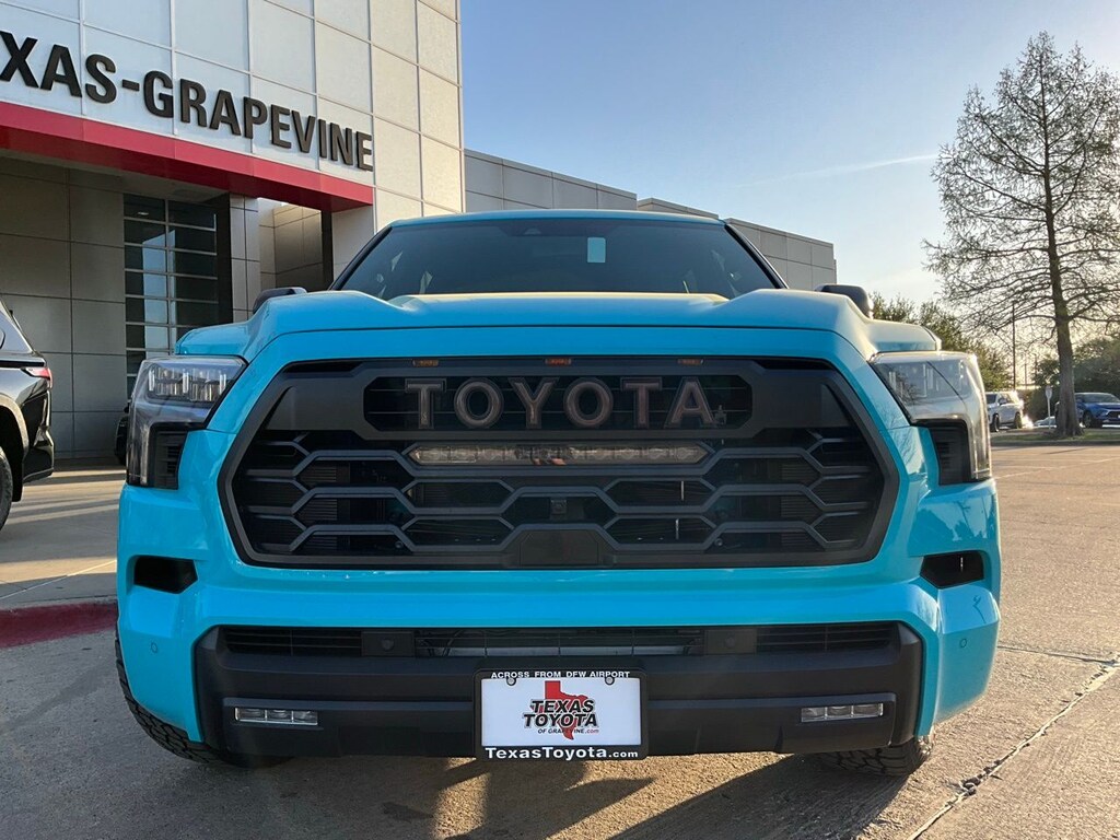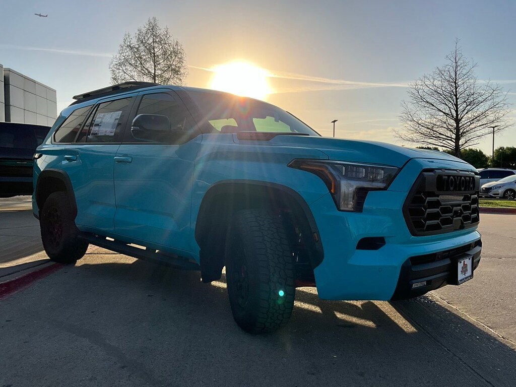 Backup Camera, LED Accent Lighting, Night Vision Auto-Dimming Mirror, Wheels, ACROSS FROM DFW AIRPORT, PRE COLLISION SYSTEM WITH PEDESTRIAN DETECTION, LANE DEPARTURE ALERT WITH SWAY WARNING, AUTO HIGH BEAMS, DYNAMIC RADAR CRUISE CONTROL, Push Button Start, Apple CarPlay Compatible, Android Auto, V6 Hybrid, 10-Speed Automatic, 4WD, 14 Speakers, 20" Wheels, 3rd row seats: split-bench, 4-Wheel Disc Brakes, ABS brakes, Air Conditioning, AM/FM radio: SiriusXM, Anti-whiplash front head restraints, Apple CarPlay/Android Auto, Auto High-beam Headlights, Auto tilt-away steering wheel, Auto-dimming door mirrors, Auto-dimming Rear-View mirror, Automatic temperature control, Brake assist, Bumpers: body-color, Compass, Delay-off headlights, Driver door bin, Driver vanity mirror, Dual front impact airbags, Dual front side impact airbags, Electronic Stability Control, Emergency communication system: Safety Connect (10-year trial), Exterior Parking Camera Rear, Front anti-roll bar, Front Bucket Seats, Front Center Armrest w/Storage, Front dual zone A/C, Front fog lights, Front reading lights, Front wheel independent suspension, Fully automatic headlights, Headlight cleaning, Heated and Ventilated Front Seats, Heated door mirrors, Heated front seats, Illuminated entry, Knee airbag, Leather Shift Knob, Leather steering wheel, Low tire pressure warning, Memory seat, Navigation system: Drive Connect (1 year trial) includes Cloud Navigation with real time traffic and Google POI, Occupant sensing airbag, Outside temperature display, Overhead airbag, Overhead console, Panic alarm, Passenger door bin, Passenger vanity mirror, Power door mirrors, Power driver seat, Power Liftgate, Power moonroof, Power passenger seat, Power steering, Power Tilt/Slide Panoramic Rood with Power Sunshade, Power windows, Premium audio system: JBL, Radio: 14" Toyota Audio Multimedia with JBL Premium Audio, Rear air conditioning, Rear reading lights, Rear seat center armrest, Rear window defroster, Rear window wiper, Reclining 3rd row seat, Remote keyless entry, Security system, Speed control, Speed-sensing steering, Split folding rear seat, Spoiler, Sport steering wheel, Steering wheel mounted audio controls, Sun blinds, Tachometer, Telescoping steering wheel, Tilt steering wheel, Traction control, TRD Pro Package, TRD Pro SofTex Seat Trim, Trip computer, Turn signal indicator mirrors, Variably intermittent wipers, Ventilated front seats, Voltmeter, Wheel Locks, Wheels: 18" Trd Pro Forged-Aluminum BBS, V6 Hybrid, 10-Speed Automatic, 4WD.