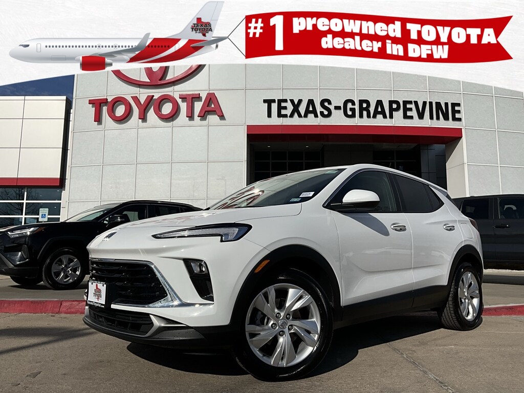 Located just minutes from DFW Airport, Texas Toyota of Grapevine is the premier Toyota dealership to meet all of your needs. Clean CARFAX. Backup Camera, Blind Spot Monitor with Rear Cross-Traffic Alert, LED Accent Lighting, Night Vision Auto-Dimming Mirror, Remote Start, Wheels, ACROSS FROM DFW AIRPORT, LANE DEPARTURE ALERT WITH SWAY WARNING, AUTO HIGH BEAMS, Push Button Start, Apple CarPlay Compatible, Android Auto, 2 USB Ports (1 Type-A, 1 Type-C), 4-Wheel Disc Brakes, 6-Way Manual Driver Seat Adjuster, ABS brakes, AM/FM radio: SiriusXM, Auto High-beam Headlights, Automatic temperature control, Brake assist, Bumpers: body-color, Cloth w/Leatherette Seat Trim, Compass, Delay-off headlights, Driver door bin, Driver vanity mirror, Dual front impact airbags, Dual front side impact airbags, Electric Auxiliary Heating/Defroster, Electronic Stability Control, Emergency communication system: OnStar and Buick connected services capable, Enhanced Performance 6-Speaker System, Front anti-roll bar, Front Bucket Seats, Front Center Armrest, Front License Plate Bracket, Front reading lights, Front wheel independent suspension, Fully automatic headlights, Heated door mirrors, Illuminated entry, Knee airbag, Low tire pressure warning, Occupant sensing airbag, Outside temperature display, Overhead airbag, Overhead console, Panic alarm, Passenger door bin, Passenger vanity mirror, Power door mirrors, Power windows, Preferred Equipment Group 1SB, Radio data system, Radio: Audio System w/AM/FM, Rear reading lights, Rear side impact airbag, Rear window defroster, Rear window wiper, Remote keyless entry, Ride & Handling Suspension, Security system, SiriusXM Trial Subscription, Speed control, Speed-sensing steering, Split folding rear seat, Spoiler, Steering wheel mounted audio controls, Tachometer, Telescoping steering wheel, Tilt steering wheel, Traction control, Trip computer, Variably intermittent wipers, Wheels: 18" Bright Silver Painted Aluminum, Wireless Apple CarPlay/Wireless Android Auto, 20" Wheels, 4-Way Manual Passenger Seat Adjuster, 5.45 Final Drive Axle Ratio, 6 Speakers, Air Conditioning, Power steering, 2 USB Ports (1 Type-A, 1 Type-C), 4-Wheel Disc Brakes, 6-Way Manual Driver Seat Adjuster, ABS brakes, AM/FM radio: SiriusXM, Auto High-beam Headlights, Automatic temperature control, Brake assist, Bumpers: body-color, Cloth w/Leatherette Seat Trim, Compass, Delay-off headlights, Driver door bin, Driver vanity mirror, Dual front impact airbags, Dual front side impact airbags, Electric Auxiliary Heating/Defroster, Electronic Stability Control, Emergency communication system: OnStar and Buick connected services capable, Enhanced Performance 6-Speaker System, Front anti-roll bar, Front Bucket Seats, Front Center Armrest, Front License Plate Bracket, Front reading lights, Front wheel independent suspension, Fully automatic headlights, Heated door mirrors, Illuminated entry, Knee airbag, Low tire pressure warning, Occupant sensing airbag, Outside temperature display, Overhead airbag, Overhead console, Panic alarm, Passenger door bin, Passenger vanity mirror, Power door mirrors, Power windows, Preferred Equipment Group 1SB, Radio data system, Radio: Audio System w/AM/FM, Rear reading lights, Rear side impact airbag, Rear window defroster, Rear window wiper, Remote keyless entry, Ride & Handling Suspension, Security system, SiriusXM Trial Subscription, Speed control, Speed-sensing steering, Split folding rear seat, Spoiler, Steering wheel mounted audio controls, Tachometer, Telescoping steering wheel, Tilt steering wheel, Traction control, Trip computer, Variably intermittent wipers, Wheels: 18" Bright Silver Painted Aluminum, Wireless Apple CarPlay/Wireless Android Auto. CARFAX One-Owner.