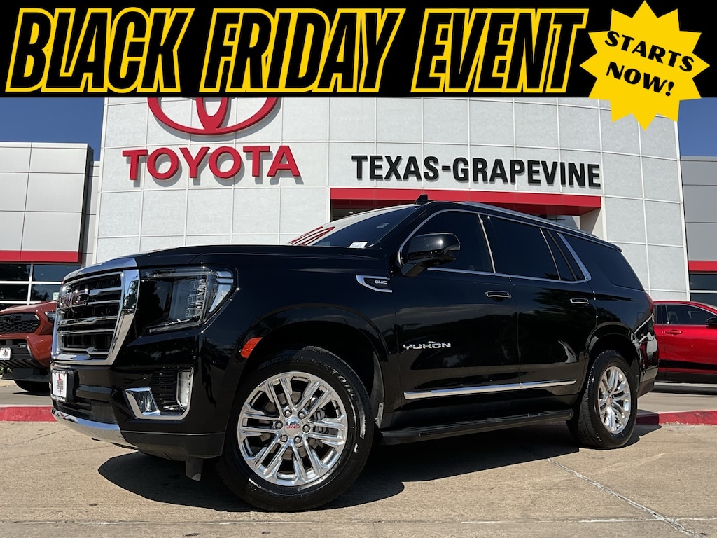 Located just minutes from DFW Airport, Texas Toyota of Grapevine is the premier Toyota dealership to meet all of your needs. Clean CARFAX. ACROSS FROM DFW AIRPORT, 2 Presets For Outside Rearview Mirrors, 2 Presets For Power Driver Seat, 3 Years of OnStar & Connected Services Plan, 3rd Row 60/40 Power-Folding Split-Bench Seat, 3rd row seats: split-bench, 4-Wheel Disc Brakes, ABS brakes, AM/FM radio: SiriusXM with 360L, AM/FM Stereo, Apple CarPlay/Android Auto, Auto High-beam Headlights, Auto-dimming Rear-View mirror, Automatic Emergency Braking, Automatic Stop/Start, Automatic temperature control, Bodyside moldings, Bose 9-Speaker Stereo Audio System Feature, Brake assist, Bright Chrome Bodyside Moldings, Bright Front & Rear Door Sill Plates, Bumpers: body-color, Chrome Door Handles w/Body-Color Strip, Compass, Delay-off headlights, Driver door bin, Driver vanity mirror, Dual front impact airbags, Dual front side impact airbags, Electronic Stability Control, Emergency communication system: OnStar and GMC Connected Services capable, Following Distance Indicator, Forward Collision Alert, Four wheel independent suspension, Front & Rear Park Assist, Front anti-roll bar, Front Bucket Seats, Front Center Armrest, Front dual zone A/C, Front fog lights, Front Pedestrian Braking, Front reading lights, Fully automatic headlights, Garage door transmitter, Hands-Free Power Programmable Rear Liftgate, HD Surround Vision, Heated & Ventilated Driver & Front Passenger Seats, Heated 2nd Row Outboard Position Seats, Heated door mirrors, Heated Driver & Front Passenger Seats, Heated front seats, Heated Steering Wheel, Illuminated entry, Inside Rear-View Auto-Dimming Mirror, IntelliBeam Automatic High Beam On/Off, Lane Change Alert w/Side Blind Zone Alert, Lane Keep Assist w/Lane Departure Warning, Leather steering wheel, Low tire pressure warning, Memory seat, Navigation System, Not Equip w/Ventilated Seat Cushion Blower Motor, Not Equipped w/4-Way Driver & Fr Pass Pwr Lumbar, Not Equipped w/Front & Rear Park Assist, Not Equipped w/Steering Column Lock, Occupant sensing airbag, Outside Heated Power-Adjustable Mirrors, Outside temperature display, Overhead airbag, Overhead console, Panic alarm, Passenger door bin, Passenger vanity mirror, Perforated Leather-Appointed Seating, Power door mirrors, Power driver seat, Power Liftgate, Power passenger seat, Power Release 2nd Row 60/40 Split-Folding Bench Seat, Power Release 2nd Row Bucket Seats, Power Tilt & Telescopic Steering Column, Power windows, Preferred Equipment Group 4SA, Premium Smooth Ride Suspension, Rain sensing wipers, Rear air conditioning, Rear anti-roll bar, Rear Cross Traffic Alert, Rear Pedestrian Alert, Rear reading lights, Rear seat center armrest, Rear window defroster, Rear window wiper, Remote keyless entry, Roof rack: rails only, Safety Alert Seat, Security system, SiriusXM w/360L, SLT Luxury Package, Speed control, Speed-sensing steering, Split folding rear seat, Spoiler, Start/Stop System Disable Button, Steering wheel mounted audio controls, Tachometer, Telescoping steering wheel, Tilt steering wheel, Traction control, Trip computer, Universal Home Remote, Variably intermittent wipers, Ventilated front seats, Voltmeter, Wheels: 20" x 9" 6-Spoke Polished Aluminum, Wi-Fi Hot Spot Capable, 20" Wheels, 3.23 Rear Axle Ratio, 9 Speakers, Air Conditioning, License Plate Front Mounting Package, Power steering, Wheel Locks (Set of 4) (LPO), 2 Presets For Outside Rearview Mirrors, 2 Presets For Power Driver Seat, 3 Years of OnStar & Connected Services Plan, 3rd Row 60/40 Power-Folding Split-Bench Seat, 3rd row seats: split-bench, 4-Wheel Disc Brakes, ABS brakes, AM/FM radio: SiriusXM with 360L, AM/FM Stereo, Apple CarPlay/Android Auto, Auto High-beam Headlights, Auto-dimming Rear-View mirror, Automatic Emergency Braking, Automatic Stop/Start, Automatic temperature control, Bodyside moldings, Bose 9-Speaker Stereo Audio System Feature, Brake assist, Bright Chrome B