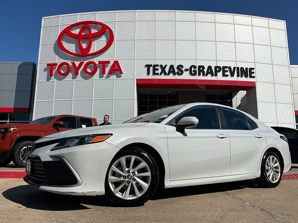 Located just minutes from DFW Airport, Texas Toyota of Grapevine is the premier Toyota dealership to meet all of your needs. Backup Camera, LED Accent Lighting, Night Vision Auto-Dimming Mirror, Wheels, ACROSS FROM DFW AIRPORT, PRE COLLISION SYSTEM WITH PEDESTRIAN DETECTION, LANE DEPARTURE ALERT WITH SWAY WARNING, AUTO HIGH BEAMS, DYNAMIC RADAR CRUISE CONTROL, Apple CarPlay Compatible, Android Auto, Black w/Fabric Seat Trim, 4-Wheel Disc Brakes, 6 Speakers, ABS brakes, AM/FM radio: SiriusXM, Apple CarPlay/Android Auto, Auto High-beam Headlights, Automatic temperature control, Brake assist, Bumpers: body-color, Delay-off headlights, Driver door bin, Driver vanity mirror, Dual front impact airbags, Dual front side impact airbags, Electronic Stability Control, Emergency communication system: Safety Connect (1-year trial), Exterior Parking Camera Rear, Four wheel independent suspension, Front anti-roll bar, Front Bucket Seats, Front Center Armrest, Front dual zone A/C, Front reading lights, Fully automatic headlights, Illuminated entry, Knee airbag, Low tire pressure warning, Occupant sensing airbag, Outside temperature display, Overhead airbag, Overhead console, Panic alarm, Passenger door bin, Passenger vanity mirror, Power door mirrors, Power driver seat, Power windows, Radio data system, Radio: Audio, Rear anti-roll bar, Rear seat center armrest, Rear side impact airbag, Rear window defroster, Remote keyless entry, Security system, Speed control, Speed-sensing steering, Split folding rear seat, Steering wheel mounted audio controls, Tachometer, Telescoping steering wheel, Tilt steering wheel, Traction control, Trip computer, Variably intermittent wipers, Wheels: 17" x 7.5J Alloy, Air Conditioning, Power steering, Black w/Fabric Seat Trim, 4-Wheel Disc Brakes, 6 Speakers, ABS brakes, AM/FM radio: SiriusXM, Apple CarPlay/Android Auto, Auto High-beam Headlights, Automatic temperature control, Brake assist, Bumpers: body-color, Delay-off headlights, Driver door bin, Driver vanity mirror, Dual front impact airbags, Dual front side impact airbags, Electronic Stability Control, Emergency communication system: Safety Connect (1-year trial), Exterior Parking Camera Rear, Four wheel independent suspension, Front anti-roll bar, Front Bucket Seats, Front Center Armrest, Front dual zone A/C, Front reading lights, Fully automatic headlights, Illuminated entry, Knee airbag, Low tire pressure warning, Occupant sensing airbag, Outside temperature display, Overhead airbag, Overhead console, Panic alarm, Passenger door bin, Passenger vanity mirror, Power door mirrors, Power driver seat, Power windows, Radio data system, Radio: Audio, Rear anti-roll bar, Rear seat center armrest, Rear side impact airbag, Rear window defroster, Remote keyless entry, Security system, Speed control, Speed-sensing steering, Split folding rear seat, Steering wheel mounted audio controls, Tachometer, Telescoping steering wheel, Tilt steering wheel, Traction control, Trip computer, Variably intermittent wipers, Wheels: 17" x 7.5J Alloy. CARFAX One-Owner. Priced below KBB Fair Purchase Price!