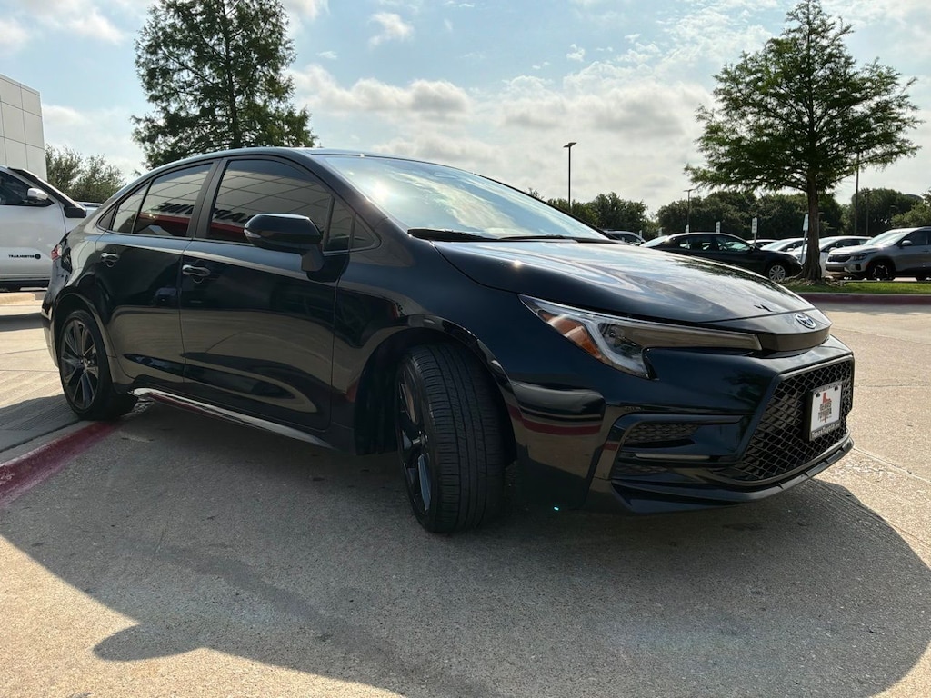 The sleek black exterior is complemented by premium 18-inch alloy wheels, LED lighting, and bold exterior styling cues that give this Corolla a sophisticated, modern look. Step inside and you'll find a well-appointed cabin with premium front sport seats, a leather-wrapped steering wheel, and the latest Toyota Audio Multimedia system with an 8-inch touchscreen display.