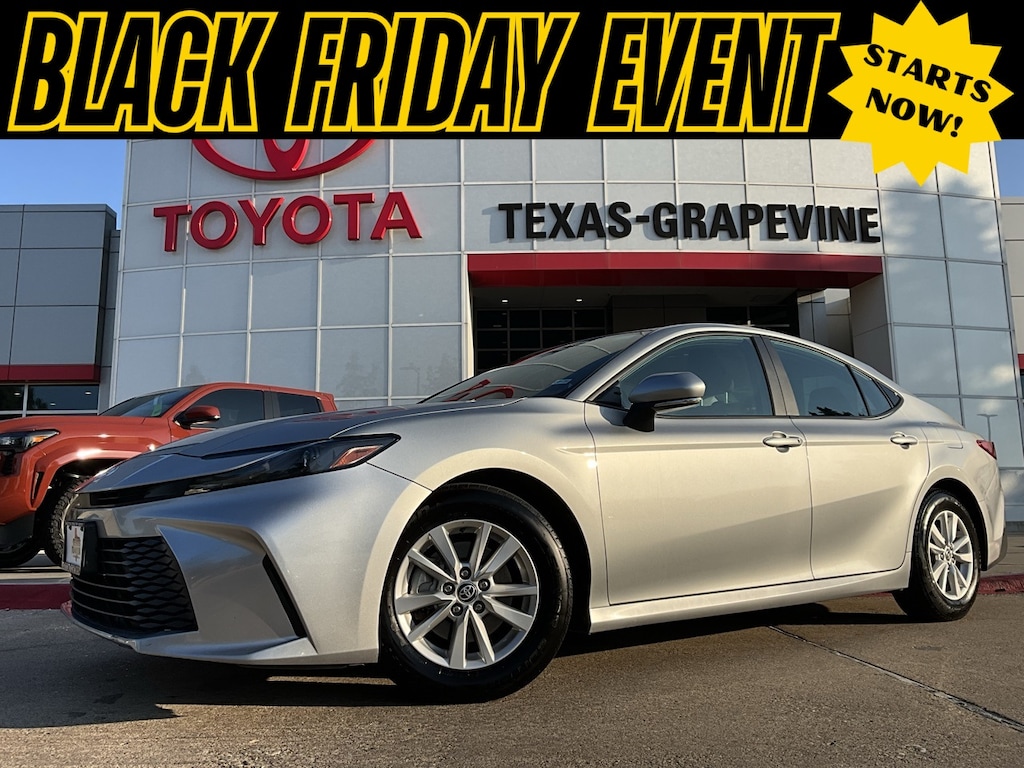 Located just minutes from DFW Airport, Texas Toyota of Grapevine is the premier Toyota dealership to meet all of your needs. Clean CARFAX. Backup Camera, Blind Spot Monitor with Rear Cross-Traffic Alert, LED Accent Lighting, Wheels, ACROSS FROM DFW AIRPORT, PRE COLLISION SYSTEM WITH PEDESTRIAN DETECTION, LANE DEPARTURE ALERT WITH SWAY WARNING, AUTO HIGH BEAMS, DYNAMIC RADAR CRUISE CONTROL, Push Button Start, Apple CarPlay Compatible, Android Auto, 2.5L 4-Cylinder 16V DOHC, Black w/Fabric Seat Trim, 4-Wheel Disc Brakes, ABS brakes, Active Cruise Control, AM/FM radio: SiriusXM, Apple CarPlay/Android Auto, Auto High-beam Headlights, Automatic temperature control, Brake assist, Bumpers: body-color, Delay-off headlights, Driver door bin, Driver vanity mirror, Dual front impact airbags, Dual front side impact airbags, Electronic Stability Control, Emergency communication system: Safety Connect (up to 10-year trial subscription), Exterior Parking Camera Rear, Four wheel independent suspension, Front anti-roll bar, Front Bucket Seats, Front Center Armrest, Front dual zone A/C, Front reading lights, Fully automatic headlights, Heated door mirrors, Illuminated entry, Knee airbag, Low tire pressure warning, Occupant sensing airbag, Outside temperature display, Overhead airbag, Overhead console, Panic alarm, Passenger door bin, Passenger vanity mirror, Power door mirrors, Power windows, Radio data system, Radio: Toyota Audio Multimedia w/8" Touchscreen, Rear anti-roll bar, Rear seat center armrest, Rear side impact airbag, Rear window defroster, Remote keyless entry, Security system, Speed control, Speed-sensing steering, Split folding rear seat, Steering wheel mounted audio controls, Telescoping steering wheel, Tilt steering wheel, Traction control, Trip computer, Turn signal indicator mirrors, Variably intermittent wipers, Wheels: 16" Silver-Finished Alloy. CARFAX One-Owner. Priced below KBB Fair Purchase Price!