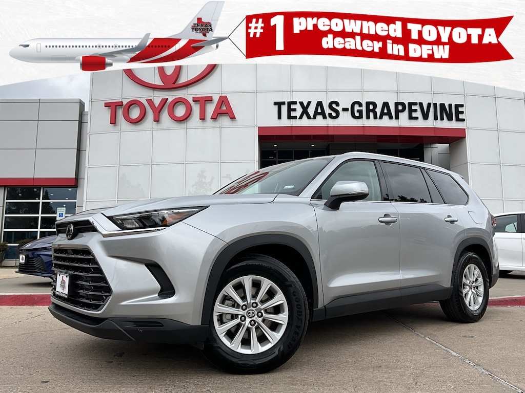 Located just minutes from DFW Airport, Texas Toyota of Grapevine is the premier Toyota dealership to meet all of your needs. Backup Camera, Blind Spot Monitor with Rear Cross-Traffic Alert, Heated Seats, Leather, LED Accent Lighting, Power Lift Tailgate, Navigation, Night Vision Auto-Dimming Mirror, Remote Start, Wheels, ACROSS FROM DFW AIRPORT, PRE COLLISION SYSTEM WITH PEDESTRIAN DETECTION, LANE DEPARTURE ALERT WITH SWAY WARNING, AUTO HIGH BEAMS, DYNAMIC RADAR CRUISE CONTROL, Push Button Start, Apple CarPlay Compatible, Android Auto, 3rd row seats: split-bench, 4-Wheel Disc Brakes, ABS brakes, AM/FM radio: SiriusXM, Apple CarPlay/Android Auto, Auto High-beam Headlights, Auto-dimming Rear-View mirror, Automatic temperature control, Brake assist, Bumpers: body-color, Delay-off headlights, Driver door bin, Driver vanity mirror, Dual front impact airbags, Dual front side impact airbags, Electronic Stability Control, Emergency communication system: Safety Connect (up to 10-year trial subscription), Exterior Parking Camera Rear, Four wheel independent suspension, Front anti-roll bar, Front Bucket Seats, Front Center Armrest, Front dual zone A/C, Front reading lights, Fully automatic headlights, Heated door mirrors, Heated Front Seats, Heated front seats, Illuminated entry, Knee airbag, Leather Shift Knob, Leather steering wheel, Low tire pressure warning, Navigation system: Drive Connect Cloud Navigation (1-year trial subscription), Occupant sensing airbag, Outside temperature display, Overhead airbag, Overhead console, Panic alarm, Passenger door bin, Passenger vanity mirror, Power door mirrors, Power driver seat, Power Liftgate, Power passenger seat, Power windows, Radio: 12.3" Toyota Multimedia Audio, Rear air conditioning, Rear anti-roll bar, Rear reading lights, Rear window defroster, Rear window wiper, Reclining 3rd row seat, Remote keyless entry, Security system, SofTex Seat Trim, Speed control, Speed-sensing steering, Split folding rear seat, Spoiler, Steering wheel mounted audio controls, Sun blinds, Tachometer, Telescoping steering wheel, Tilt steering wheel, Traction control, Trip computer, Turn signal indicator mirrors, Variably intermittent wipers, Wheels: 18" Multi-Spoke Silver Painted Alloy, 20" Wheels, 6 Speakers, Air Conditioning, Power steering, 3rd row seats: split-bench, 4-Wheel Disc Brakes, ABS brakes, AM/FM radio: SiriusXM, Apple CarPlay/Android Auto, Auto High-beam Headlights, Auto-dimming Rear-View mirror, Automatic temperature control, Brake assist, Bumpers: body-color, Delay-off headlights, Driver door bin, Driver vanity mirror, Dual front impact airbags, Dual front side impact airbags, Electronic Stability Control, Emergency communication system: Safety Connect (up to 10-year trial subscription), Exterior Parking Camera Rear, Four wheel independent suspension, Front anti-roll bar, Front Bucket Seats, Front Center Armrest, Front dual zone A/C, Front reading lights, Fully automatic headlights, Heated door mirrors, Heated Front Seats, Heated front seats, Illuminated entry, Knee airbag, Leather Shift Knob, Leather steering wheel, Low tire pressure warning, Navigation system: Drive Connect Cloud Navigation (1-year trial subscription), Occupant sensing airbag, Outside temperature display, Overhead airbag, Overhead console, Panic alarm, Passenger door bin, Passenger vanity mirror, Power door mirrors, Power driver seat, Power Liftgate, Power passenger seat, Power windows, Radio: 12.3" Toyota Multimedia Audio, Rear air conditioning, Rear anti-roll bar, Rear reading lights, Rear window defroster, Rear window wiper, Reclining 3rd row seat, Remote keyless entry, Security system, SofTex Seat Trim, Speed control, Speed-sensing steering, Split folding rear seat, Spoiler, Steering wheel mounted audio controls, Sun blinds, Tachometer, Telescoping steering wheel, Tilt steering wheel, Traction control, Trip computer, Turn signal indicator mirrors, Variably intermittent wipers, Wheels: 18