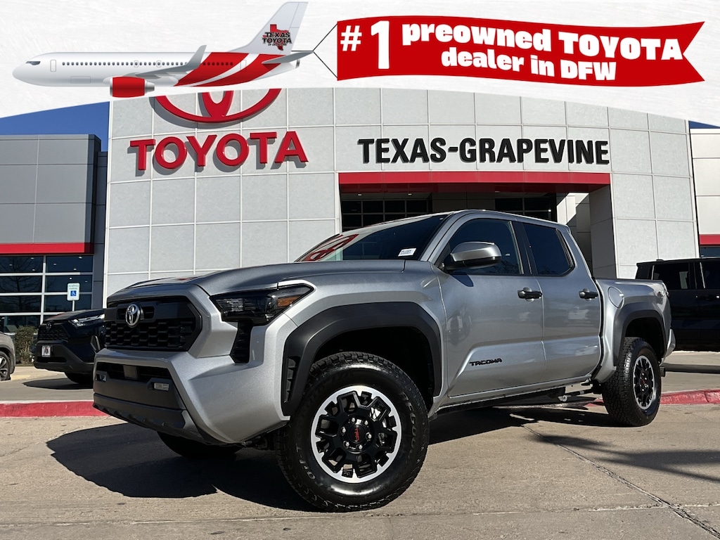 Located just minutes from DFW Airport, Texas Toyota of Grapevine is the premier Toyota dealership to meet all of your needs. Clean CARFAX. Backup Camera, Blind Spot Monitor with Rear Cross-Traffic Alert, Heated Seats, LED Accent Lighting, Night Vision Auto-Dimming Mirror, Remote Start, Wheels, ACROSS FROM DFW AIRPORT, PRE COLLISION SYSTEM WITH PEDESTRIAN DETECTION, LANE DEPARTURE ALERT WITH SWAY WARNING, AUTO HIGH BEAMS, DYNAMIC RADAR CRUISE CONTROL, Push Button Start, Apple CarPlay Compatible, Android Auto, Qi Compatible Wireless Charging, Tow Hitch, 4WD, 4-Wheel Disc Brakes, ABS brakes, AM/FM radio: SiriusXM, Anti-whiplash front head restraints, Apple CarPlay/Android Auto, Auto High-beam Headlights, Auto-dimming Rear-View mirror, Brake assist, Bumpers: body-color, Driver door bin, Dual front impact airbags, Dual front side impact airbags, Electronic Stability Control, Emergency communication system: Safety Connect (1-year trial), Exterior Parking Camera Rear, Four wheel independent suspension, Front anti-roll bar, Front Bucket Seats, Front Center Armrest, Front fog lights, Front reading lights, Fully automatic headlights, Heated door mirrors, Illuminated entry, Knee airbag, Low tire pressure warning, Occupant sensing airbag, Outside temperature display, Overhead airbag, Overhead console, Panic alarm, Passenger door bin, Power door mirrors, Power windows, Radio: 8" Toyota Audio Multimedia, Rear step bumper, Rear window defroster, Remote keyless entry, Speed control, Speed-sensing steering, Split folding rear seat, Steering wheel mounted audio controls, Tachometer, Telescoping steering wheel, Tilt steering wheel, Traction control, TRD Off Road Package, Trip computer, Variably intermittent wipers, Wheels: 17" TRD Off-Road Alloy, 20" Wheels, 3.583 Axle Ratio, 6 Speakers, Air Conditioning, Leather Seat Trim, Power steering, 4WD, 4-Wheel Disc Brakes, ABS brakes, AM/FM radio: SiriusXM, Anti-whiplash front head restraints, Apple CarPlay/Android Auto, Auto High-beam Headlights, Auto-dimming Rear-View mirror, Brake assist, Bumpers: body-color, Driver door bin, Dual front impact airbags, Dual front side impact airbags, Electronic Stability Control, Emergency communication system: Safety Connect (1-year trial), Exterior Parking Camera Rear, Four wheel independent suspension, Front anti-roll bar, Front Bucket Seats, Front Center Armrest, Front fog lights, Front reading lights, Fully automatic headlights, Heated door mirrors, Illuminated entry, Knee airbag, Low tire pressure warning, Occupant sensing airbag, Outside temperature display, Overhead airbag, Overhead console, Panic alarm, Passenger door bin, Power door mirrors, Power windows, Radio: 8" Toyota Audio Multimedia, Rear step bumper, Rear window defroster, Remote keyless entry, Speed control, Speed-sensing steering, Split folding rear seat, Steering wheel mounted audio controls, Tachometer, Telescoping steering wheel, Tilt steering wheel, Traction control, TRD Off Road Package, Trip computer, Variably intermittent wipers, Wheels: 17" TRD Off-Road Alloy. CARFAX One-Owner.
