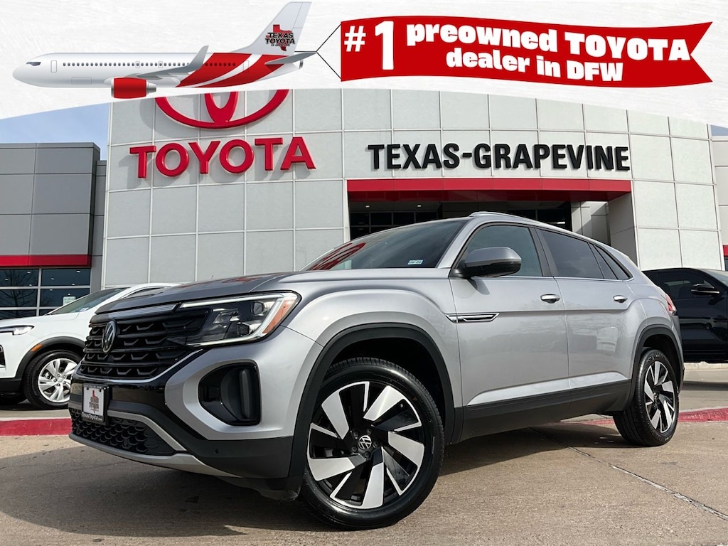 Located in Grapevine, just across from DFW Airport, Texas Toyota of Grapevine makes it easy to shop a top-tier selection of pre-owned vehicles. As the #1 pre-owned Toyota dealership in Dallasâ"Fort Worth, weâre committed to a straightforward buying experience and great value on every unit. Clean CARFAX. Backup Camera, Blind Spot Monitor with Rear Cross-Traffic Alert, Heated Seats, Leather, LED Accent Lighting, Power Lift Tailgate, Night Vision Auto-Dimming Mirror, Remote Start, Ventilated Front Seats, Wheels, ACROSS FROM DFW AIRPORT, LANE DEPARTURE ALERT WITH SWAY WARNING, AUTO HIGH BEAMS, Push Button Start, Apple CarPlay Compatible, Android Auto, 20" Wheels, 4-Wheel Disc Brakes, 4-Wheel Independent Suspension, 6 Speakers, ABS brakes, Air Conditioning, AM/FM radio: SiriusXM with 360L, Auto High-beam Headlights, Auto tilt-away steering wheel, Auto-dimming Rear-View mirror, Automatic temperature control, Brake assist, Bumpers: body-color, Compass, Delay-off headlights, Driver door bin, Driver vanity mirror, Dual front impact airbags, Dual front side impact airbags, Electronic Stability Control, Emergency communication system: VW Car-Net Safe & Secure 5-year, Exterior Parking Camera Rear, Four wheel independent suspension, Front anti-roll bar, Front Bucket Seats, Front Center Armrest, Front dual zone A/C, Front fog lights, Front reading lights, Fully automatic headlights, Heated & Actively Ventilated Front Seats, Heated door mirrors, Heated front seats, Illuminated entry, Low tire pressure warning, Occupant sensing airbag, Outside temperature display, Overhead airbag, Overhead console, Panic alarm, Passenger door bin, Passenger vanity mirror, Perforated V-Tex Leatherette Seating Surfaces, Power door mirrors, Power driver seat, Power Liftgate, Power steering, Power windows, Radio data system, Radio: MIB3 Composition Media AM/FM/HD, Rain sensing wipers, Rear anti-roll bar, Rear reading lights, Rear seat center armrest, Rear window defroster, Rear window wiper, Remote keyless entry, Security system, Speed control, Speed-sensing steering, Split folding rear seat, Spoiler, Steering wheel mounted audio controls, Tachometer, Telescoping steering wheel, Tilt steering wheel, Traction control, Trip computer, Turn signal indicator mirrors, Variably intermittent wipers, Ventilated front seats, Wheels: 20" 5-Spoke 2-Tone Machined Alloy, Park Distance Control Front And Rear Parking Sensors Collision Mitigation-Rear Driver Monitoring-Alert Collision Mitigation-Front Front Assist (Forward Collision Warning and Autonomous Emergency Braking) Front Assist (Forward Collision Warning & Autonomous Emergency Braking w/Pedestrian & Cycling Monitoring). CARFAX One-Owner. Priced below KBB Fair Purchase Price!